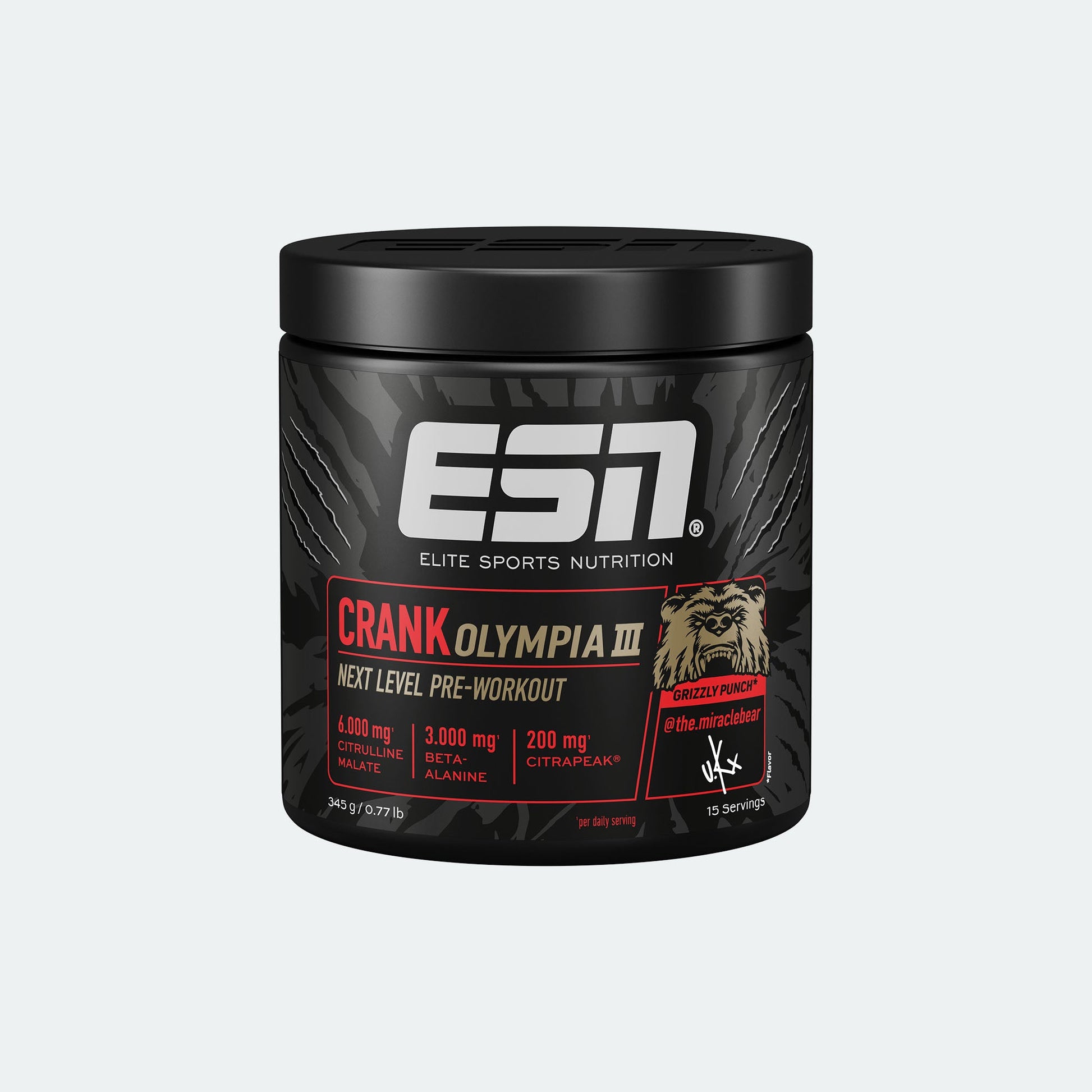 Next level boost and get in the zone – Crank Olympia 3.0 ist die nächste Evolutionsstufe unseres beliebten Olympia Boosters, mitentwickelt von unserem Pro-Athleten Urs Kalecinski. Das neuste Upgrade unserer erfolgreichen Formel beinhaltet neben erhöhtem Synephringehalt und Niacin den exklusiven und patentierten Pump-Wirkstoff CitraPeak® für eine Voluminisierung auf einem neuen Level und ein noch intensiveres Trainingserlebnis. Das Ergebnis: Der optimale Boost für Energie, Drive und Pump.1,2,3,4,5,6